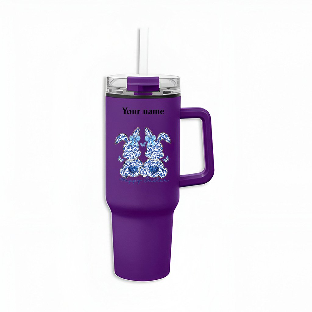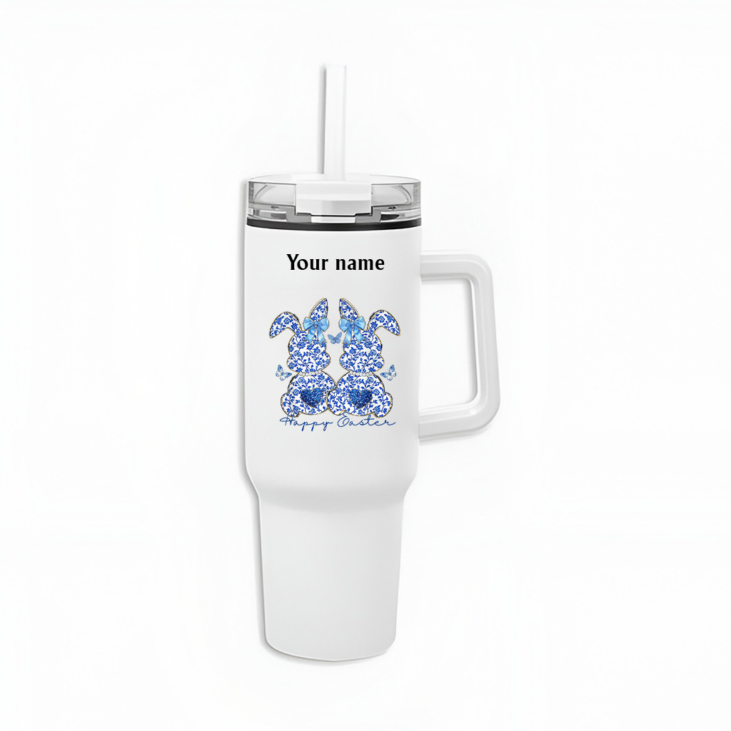 Blue Chinoiserie Bunny Rabbit Vintage Easter Bow Coquette Tumbler